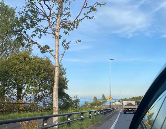 地図記憶おぼろげなまま、向こうはロシアかなと想像する車窓。