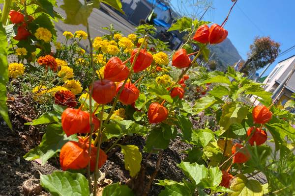 来年育てるかーーー触ると案外硬い。道に植えられてた。