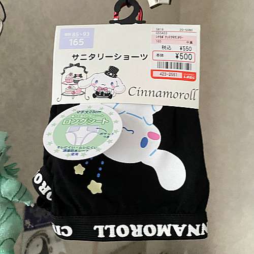 シナモロールというかサンリオは絵柄によって全然違う。このパンツの柄側のシナモンは可愛い。台紙の甘々スイ〜ツなイラストと違ってゆめかわポップ - - -☆