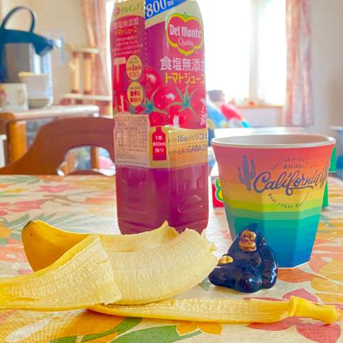 レタス、キャベツ、もやし、れんこん、漬物など音が鳴る野菜は、家族が同じ部屋にいると食べづらい。トマトが高騰したままだからせめてトマトジュースを。バナナは年中200円以内で6本入りが買える。 -