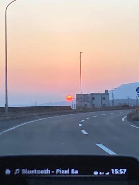 りっぱに真っ赤な熱い夕日でしたのに、撮影したら小学館のロゴマークになっちゃいました…。 -