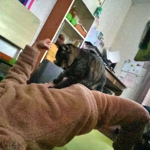 ヒップリフトしてたら乗り上がって腹をふみふみしだす邪魔ネコ
