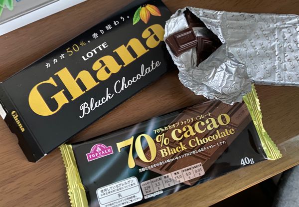 健康食品。ブラックチョコ。一日4欠片くらいおやつとして食べる。
