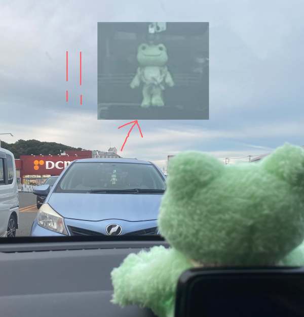 スーパーの駐車場にて車留めたら、真ん前の車に意図せず奇跡的に同じ色のかえるのピクルスがいて最高に笑えました。