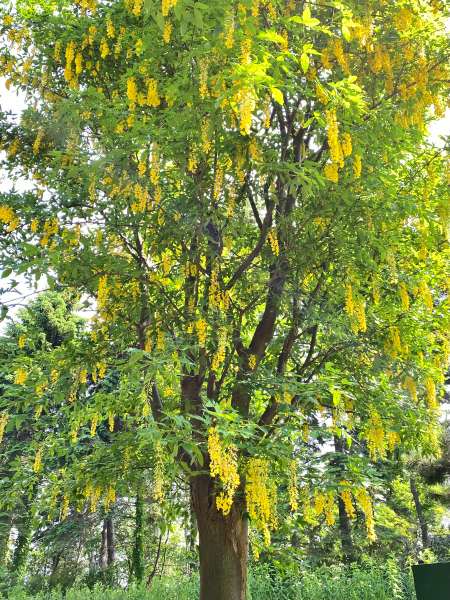 黄色い花が垂れてる木、似たようなの最近描いたな。あの絵はフィリピンの草原の写真に写ってた木を参考にしました。