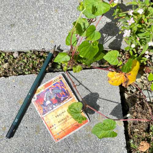 郵便局の隣の駐車場付近で拾ったものを落とし物コレクションに加える。コレクションルールは、明らかに(主観で)ただの落ちてるゴミではないもので、もらってしまっても落とし主が困らない/返す必要もないようなもので、尚なんとなく惹かれればOKです。汚れて変色したカード、割れた鉛筆。どうしてあの場所に落ちていたのか妄想。他に食パンの留め具が3つも。