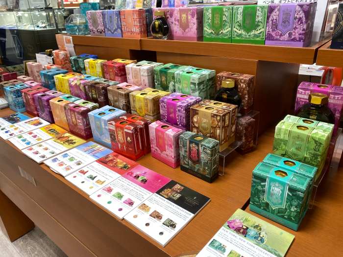 もっと奥にはショーケースに入った高級ペンが。全体的に厳かな雰囲気。