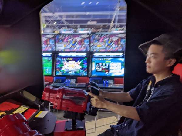 ついでに以前の野蛮なアーケードゲームのハンドルを握っているだけの写真ももらった。