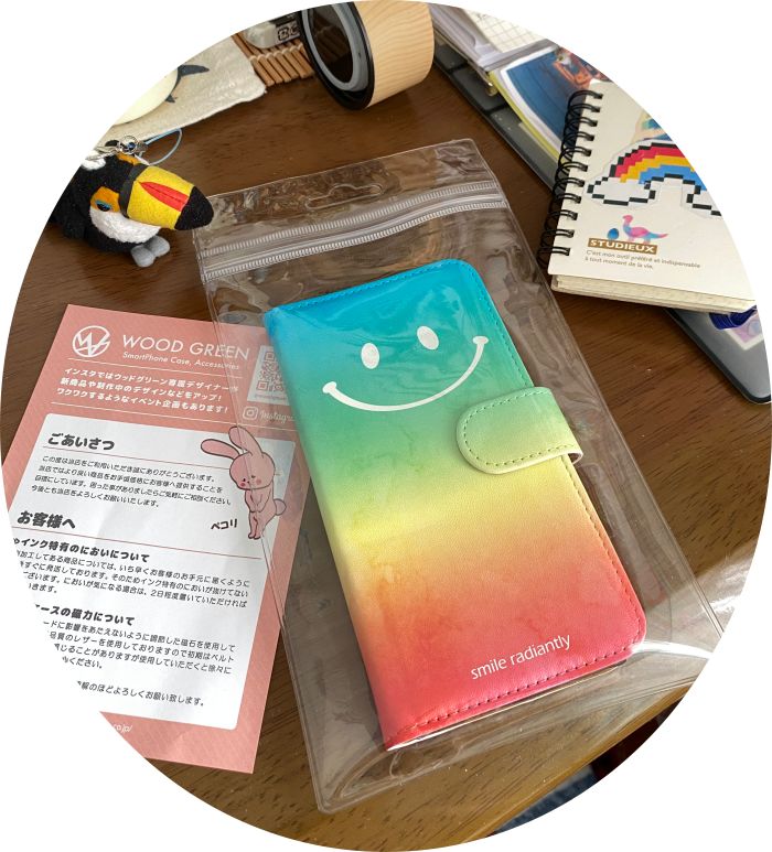 2,000円のツートンネオンカラーのにしようか考えていたらこれを見つけて気に入った。大好きレインボーニコちゃんスマイル。しかも安いよ。