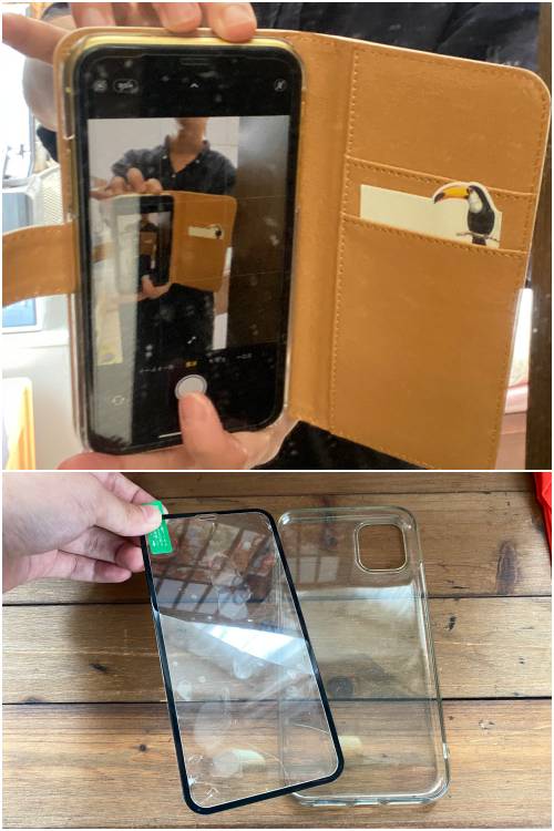 父もスマートフォンを買い替えてからベルトなしの手帳型ケースを使っている。木製でかっこいい。