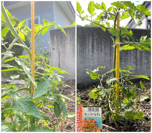 畑の大玉とミニトマトは実が膨らんできている。嬉しい!!