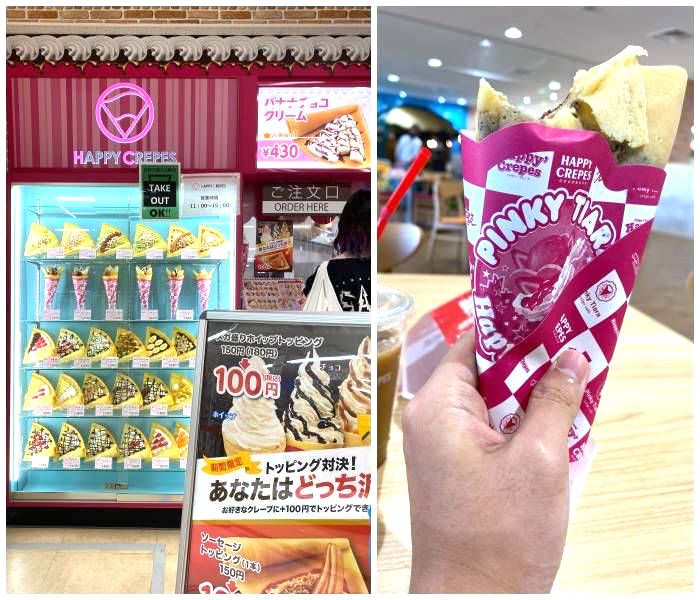 ドンキ内フードコートHAPPY CREPESのホットチョコアーモンドクレープ。
