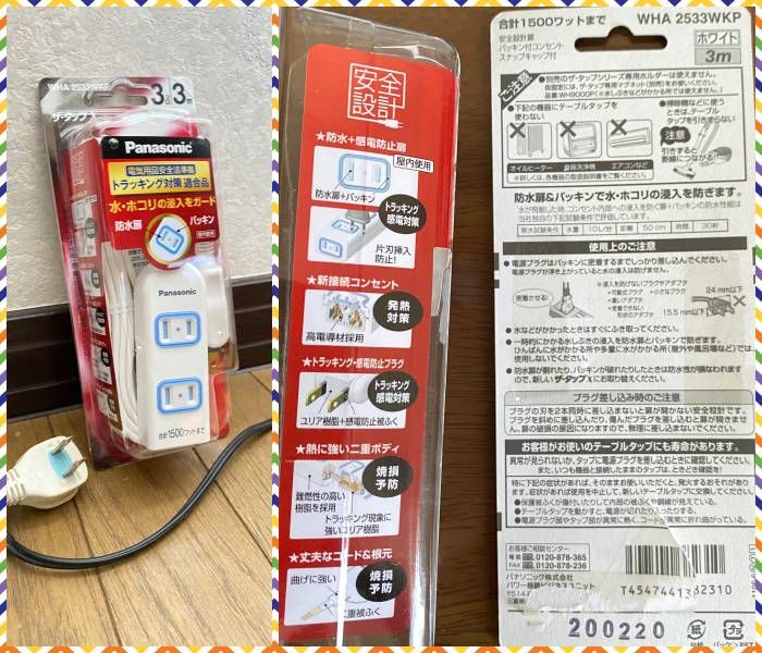 のでドンキで買ってもらった。1,078円くらい。パナソニックの3個口3m。