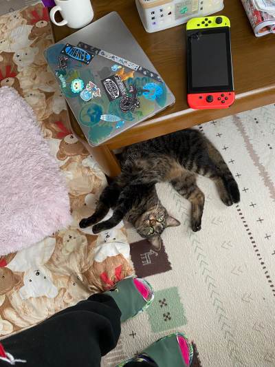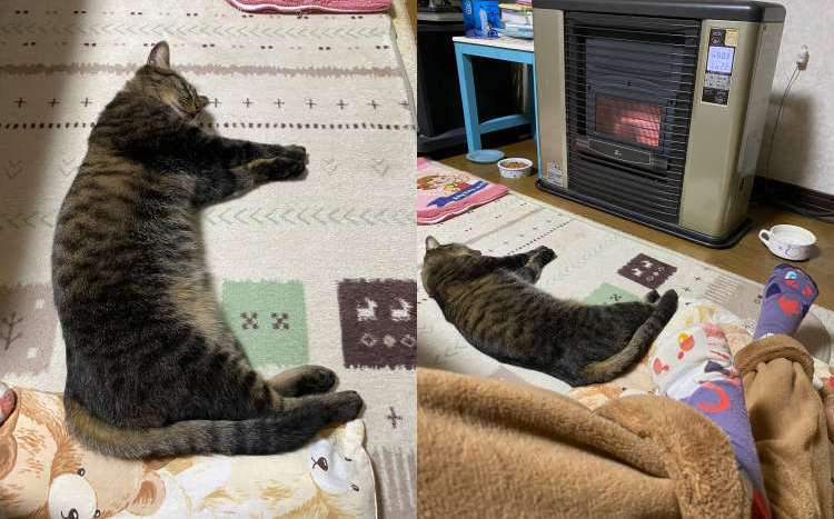 いつも母に腕枕してもらって寝る甘えっ子なのに、朝方ストーブの前でひとりで寝てたり。