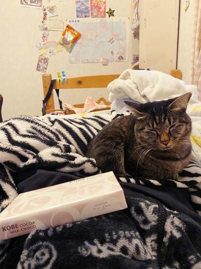 ルルの元飼い主の弟が大阪からチョコをお土産に持ってきてくれました。ルルはなにももらえません。