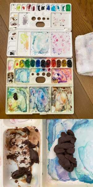 久々に透明水彩パレット開けた。うんこだけ移動してた -