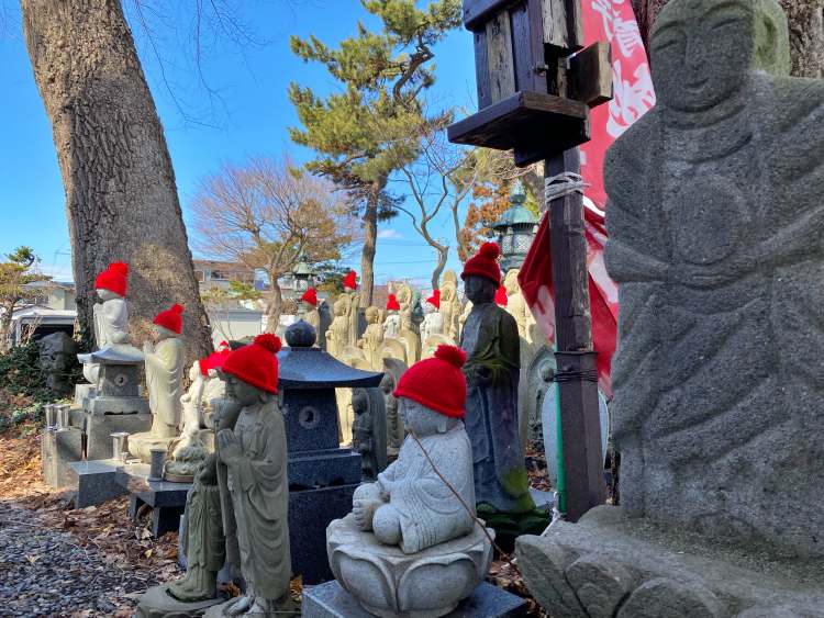お帽子作ってもらえてうれしそう。割れて首取れてるお地蔵さんが一人いた。割っちゃったらわるい気分だろうなあ。