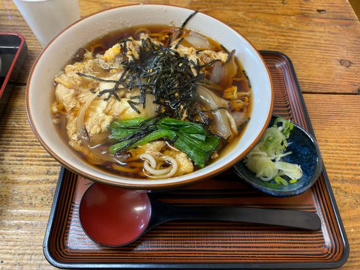 そば屋「案山子」の卵とじそば。