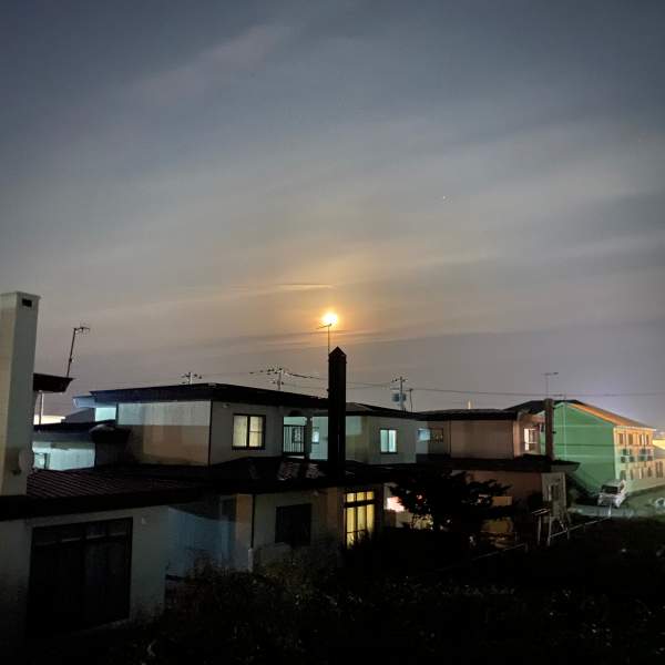 昨晩のピンクムーン。位置が悪い。