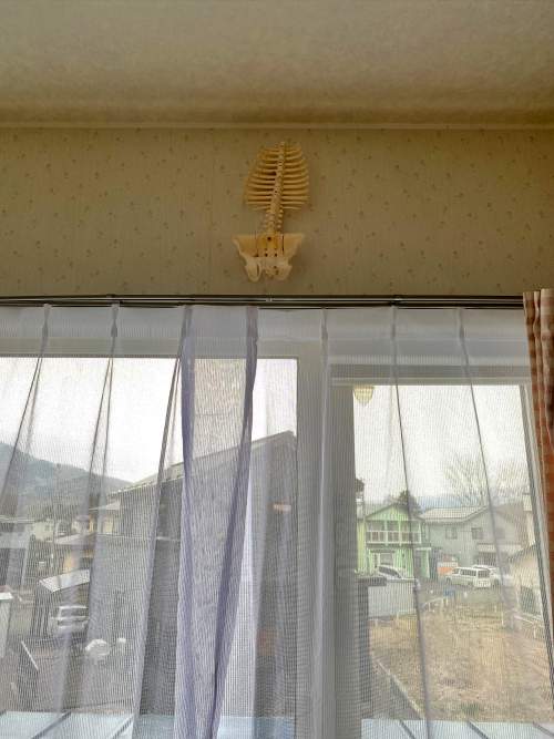 父の作業部屋の時計があった場所に骨の模型。(画像のはっきりした説明) -