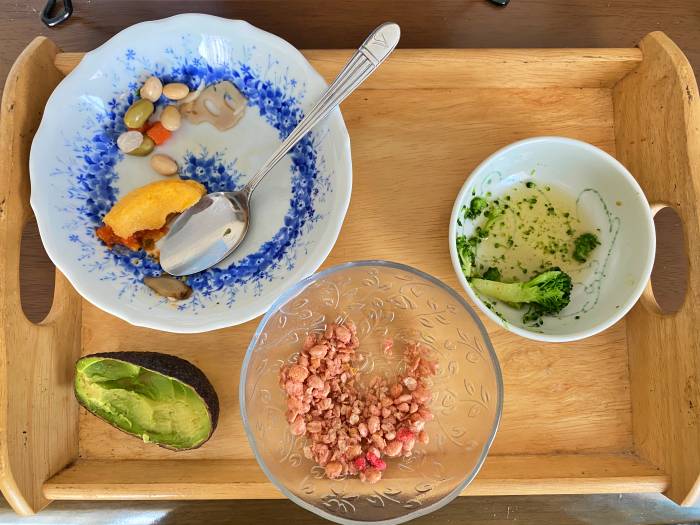 グラノーラ(日清シスコごろっとグラノーラいちごづくし)以外は一見バランス良さそうな昼食。