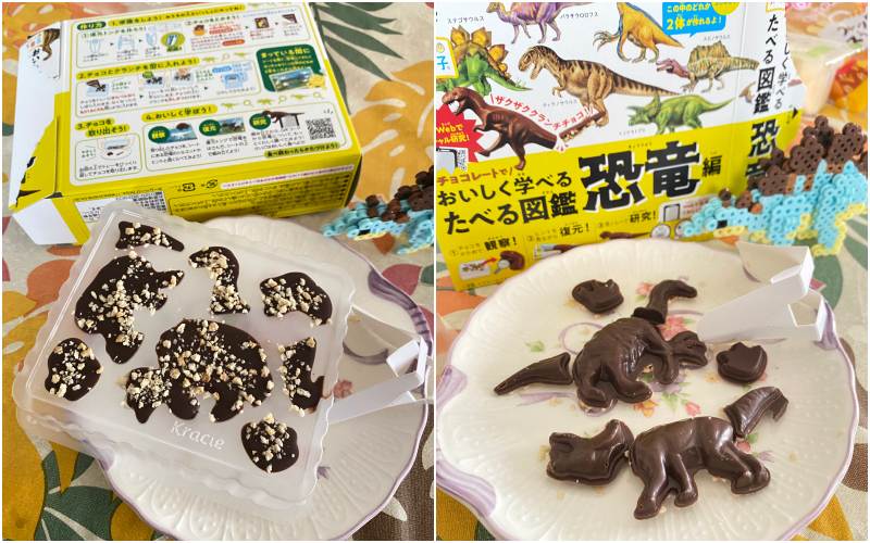 トリケラトプスとテリジノサウルス。ただ溶かして型に入れて冷やすだけね。味が意外といい。