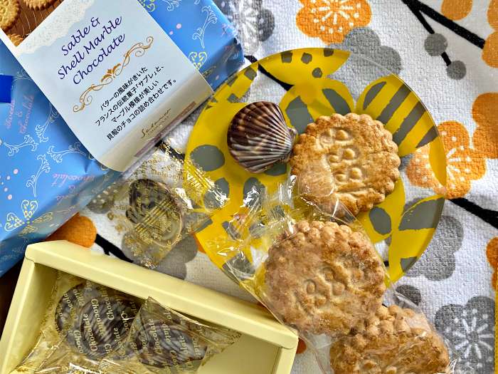 本日のおやつはサブレ2枚と貝殻チョコ1枚で。 -