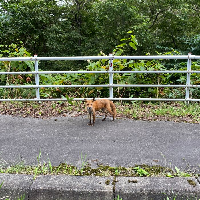 近所の山ドライブで痩せ細ったキツネと出会う。