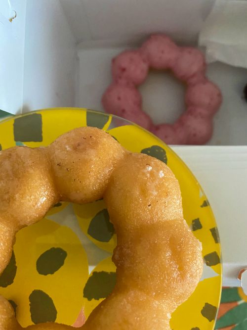 ミスタードーナツでポン・デ・リング2個も買ってきた^^大丈夫、家にまだあるお菓子は賞味期限がもつから。