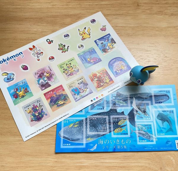 買ってきてくれた水谷恵さん画のポケモン切手、メッソンたちのシール付き。