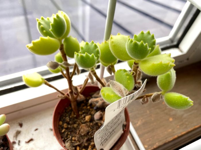 下葉が枯れてぼろぼろと落ちて見栄えが悪くなるので切って埋め直さなければならない。簡単に増えるので鉢がいくつもある。