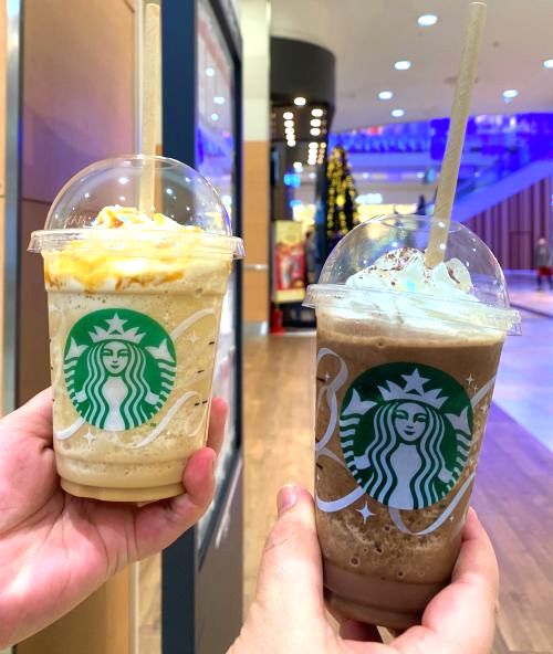 トマコマイシティのスターバックスで初めて自分のぶんを買ってみる。ダークモカチップフラペチーノ。わりと甘い。ショートサイズで十分腹の足しに。