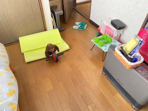 ダンベル持って腕鍛えながら。どうぶつの森のエックスエルの手足を太くした姿を想像してください。冬は外に出ず動かないより絶対いい。欠点があれば今度書く。