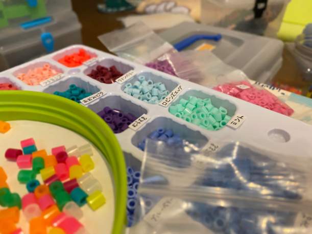 アイロンビーズも片付け中。背中痛くならなければ延々やっていられるビーズの色分け。誰にも会わずに家でこんな仕事がしたいよ。 -