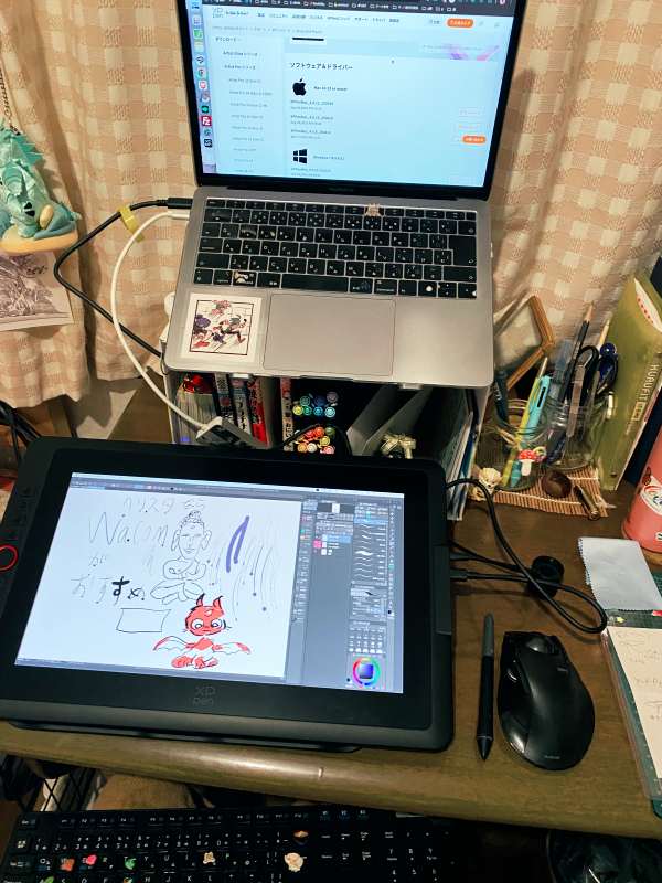 macbook画面遠くて大変。今液タブのほうを主ディスプレイにして液タブでこの文章書いてる。知らんかった…でかいipadみたい…