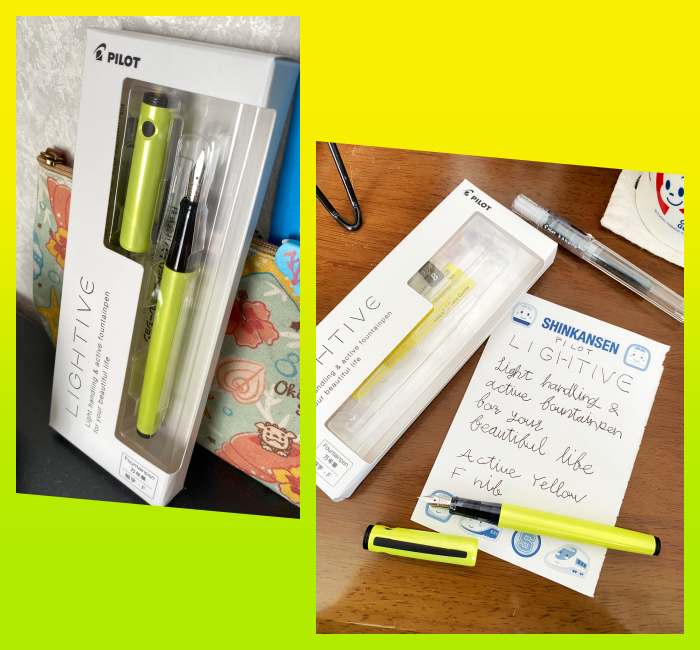 ライティブのアクティブイエロー。少しキラキラしておりただのイエローじゃなく車の外側みたいな綺麗な色と素材ですよ。万年筆は高級感ただようデザインよりもカジュアルな雰囲気のが好きです。高級万年筆も多くがプラスチック製です。