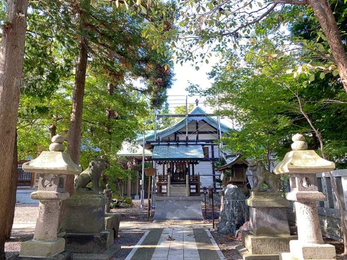 木陰がひんやり。刈田神社。