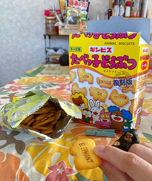 たべっ子どうぶつは食べ物。マーガリン不使用なので食べていい。ダイソーにあった。