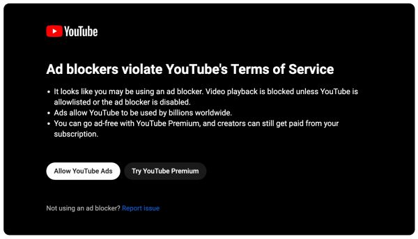 ついにyoutubeの広告ブロッカー対策が本格化。Adblock有効のままでは視聴不可能に。