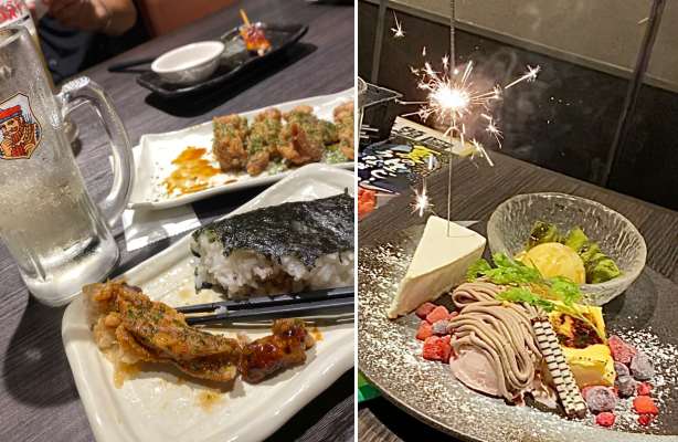 母の職場のYちゃんの夫が店長やってる飲み屋。母の誕生日で豪華なデザートをサービスしてくれた!!母と父と3人で食べました。線香花火付きデザート間近で見たの初めて!運動がんばったのに食べすぎたわ。