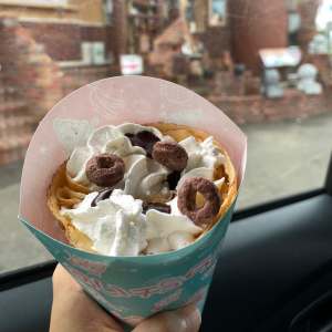 親が好きな長沼のアイス屋でチョコクレープを頼んだらまさかのチョコソース+しけたチョコワみたいなもん+ホイップクリームクレープが出てきました。生地はもちっとしてて美味でした
