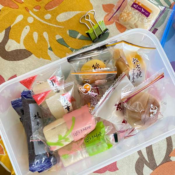 和菓子ミックスをタッパに。袋のままより量が把握でき見栄えがいい。丁度良く収納する快感 -