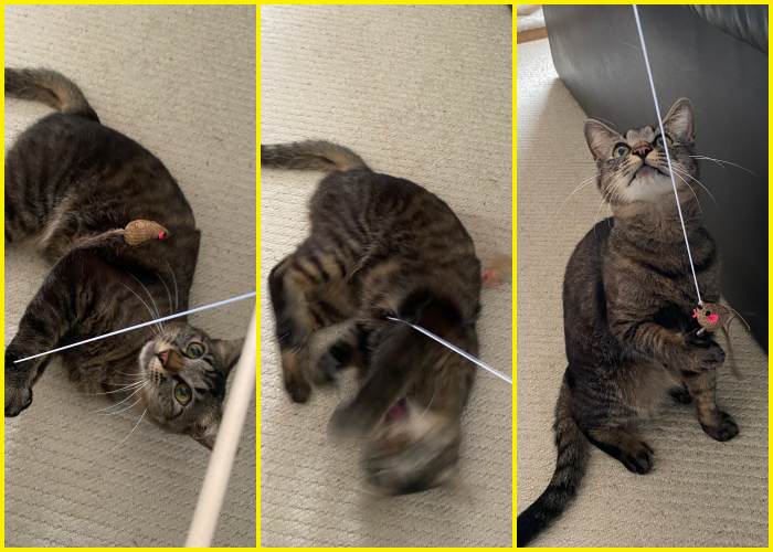 母のツイッター友達が猫じゃらしとネコ爪切りを送ってくれました。ルルは大喜びです。