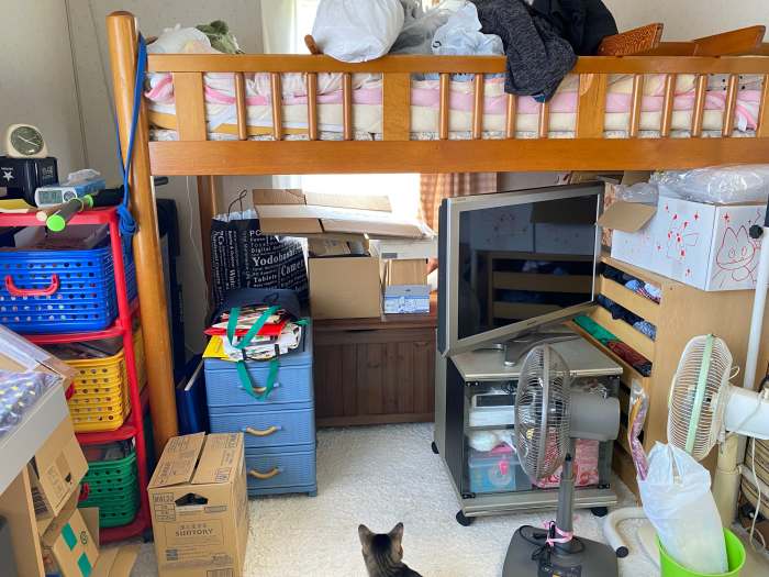 昔母が通販で買って失敗した収納ベンチ(棺桶)が兄弟の部屋へ置かれました。物置倉庫です。
