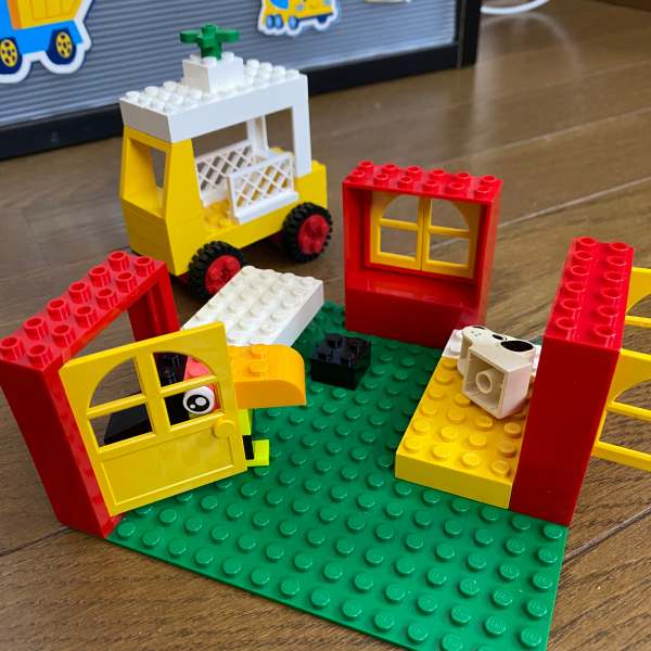 屋根裏から発掘。懐かしいレゴ。オムライスと飛行機と、キャンピングカーみたいな車を昔作った記憶が。今ベッドを作ってみたらひどすぎて崩した。 -
