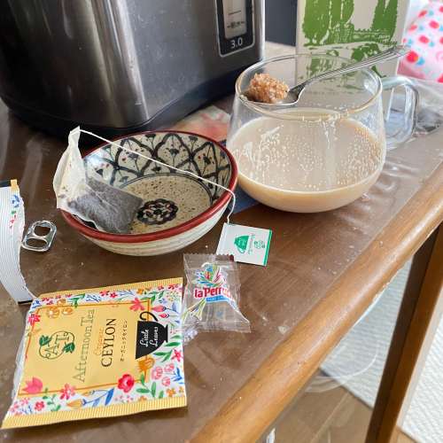 ミルクティーに角砂糖を入れてみたら半分溶かしただけで十分な甘さ。