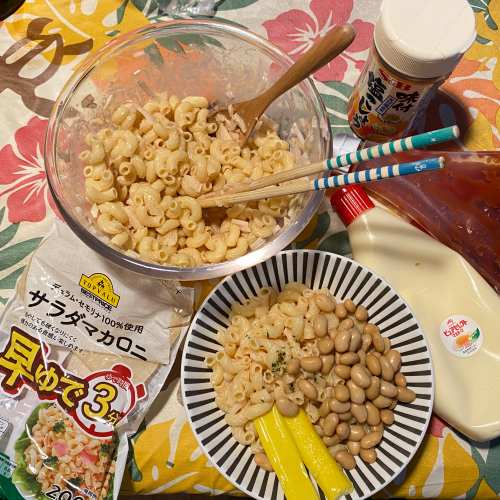 初めてマカロニサラダを作った。ケチャップは隠し味。おいしくできた。
