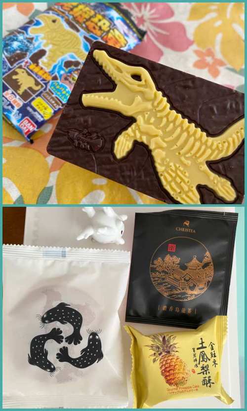 下は父が台湾でもらってきたお菓子と烏龍茶。店へ行くとお土産が本当にパイナップルケーキしかないと言ってた。誇張でしょ? -