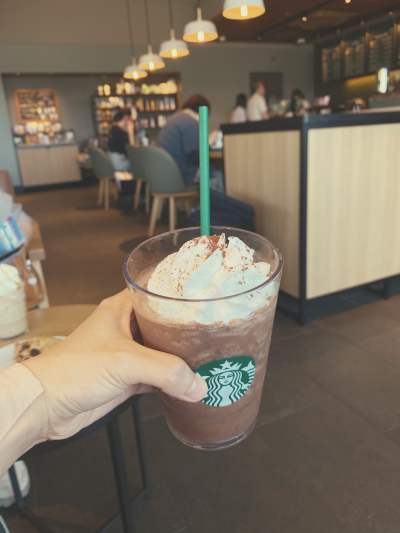 初めて店でチョコチップフラペチーノ飲んだ。スターバックスはめったに行かない。 -