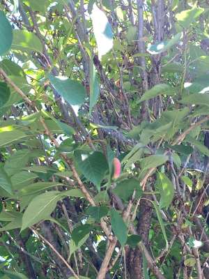 高いところに派手なピンク色の大きなイモムシ。モモスズメ?目立ちすぎでは!? -